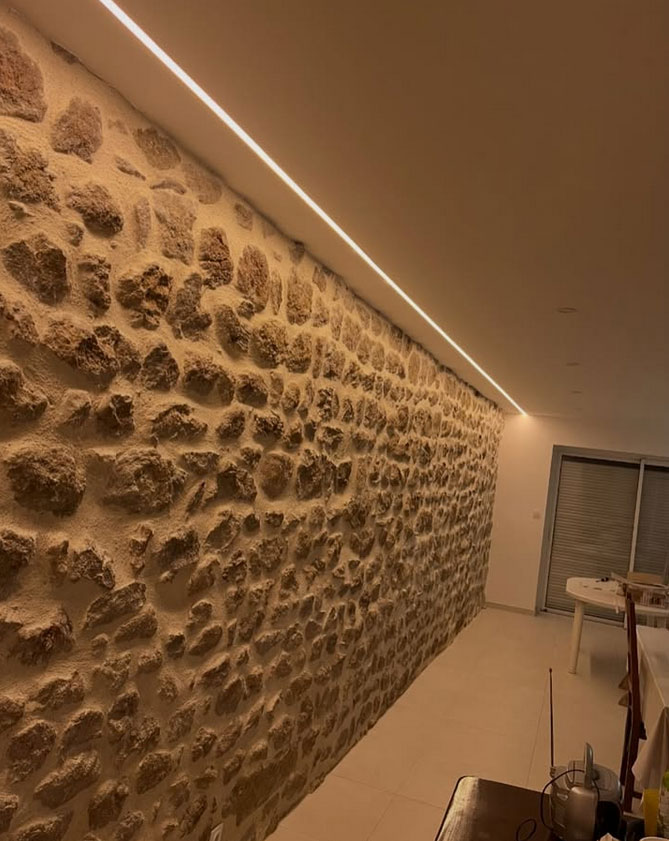 - Éclairage Intérieur : Étude et installation de toutes solutions d’éclairage moderne (spots LED, rubans, lustres design) adaptées à chaque pièce.